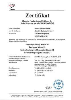 In addition we have been certified as a specialised bonding company in accordance with DIN 2304 and TL A-0023 and TL A-0023. We are therefore authorised to carry out adhesive bonding processes in the following areas of application: